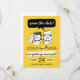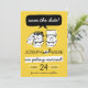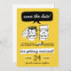 Fun retro save the date card featuring bride and groom raptor dinosaurs. Made with easily customizable color scheme.