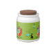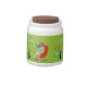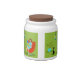 This Retro Reading Woman Candy Jar features a 1960's style, minimalist art, cartoon drawing of a woman who has her priorities in order. This delightful bookworm is entranced in a real page-turner. The shapely brunette is wearing an aqua dress and red glasses, while holding a blue book. She is seated in a comfy, red egg chair. In front of her, a sleek, black cat in a teal collar is enjoying the peace and quiet that comes from living with a bibliophile. Both woman and cat are in a stylish green room. Overhead, there is a kitschy pendant lamp in shades of yellow and turquoise. To the side, there is a lush, tropical, potted plant in an aqua flowerpot. Kitty, if you need something, you'll have to wait until she finishes this chapter!