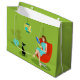 This Retro Reading Woman Gift Bag features a 1960's style, minimalist art, cartoon drawing of a woman who has her priorities in order. This delightful bookworm is entranced in a real page-turner. The shapely brunette is wearing an aqua dress and red glasses, while holding a blue book. She is seated in a comfy, red egg chair. In front of her, a sleek, black cat in a teal collar is enjoying the peace and quiet that comes from living with a bibliophile. Both woman and cat are in a stylish green room. Overhead, there is a kitschy pendant lamp in shades of yellow and turquoise. To the side, there is a lush, tropical, potted plant in an aqua flowerpot. Kitty, if you need something, you'll have to wait until she finishes this chapter!