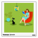 This Retro Reading Woman Wall Decal features a 1960's style, minimalist art, cartoon drawing of a woman who has her priorities in order. This delightful bookworm is entranced in a real page-turner. The shapely brunette is wearing an aqua dress and red glasses, while holding a blue book. She is seated in a comfy, red egg chair. In front of her, a sleek, black cat in a teal collar is enjoying the peace and quiet that comes from living with a bibliophile. Both woman and cat are in a stylish green room. Overhead, there is a kitschy pendant lamp in shades of yellow and turquoise. To the side, there is a lush, tropical, potted plant in an aqua flowerpot. Kitty, if you need something, you'll have to wait until she finishes this chapter!