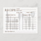 A card with brown lines, stripes placed on white surface with personalized background retro recipe on front postcard. It is customized with your initial and name.