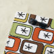 This beach towel has a mid-century modern design of rounded rectangles in green, gold, orange, or brown with starbursts inside. If you like the design but prefer different colors, message me.