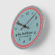This battery powered wall clock is designed to be a stylish decor touch to any RV home, travel trailer or vacation cottage and doesn't require an electric source. Designed in a retro style pattern in shades of red and teal and ready for your own personalized text. See lots of coordinating items at Camp_and_Cottage at Zazzle.