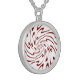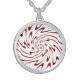 Retro Red and White Waves Abstract Art Silver Plated Necklace