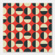 This dot pattern is a vintage sixties pattern. The colors are bold and the split colored dots give a geometric feel. The background is orange red. The dots are tiled.