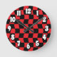 This cool wall clock features a red and black wavy checkerboard pattern. The numbers are in a groovy font. You can change the color of everything you see in the Edit screen. ••• For more retro homewares, visit my store Zazzle.com/JessicaAmberArtist ••• For custom orders, message me on Zazzle