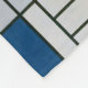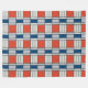 This fleece blanket features a retro geometric pattern in red, blue and light grey.