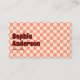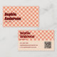 Make a bold statement with this retro-inspired business card featuring a classic red and peach checkered pattern. The chunky vintage font and minimalist layout create a perfect blend of fun and professional. A built-in QR code section makes it easy to direct clients or followers to your website or portfolio. Personalize the name, title, contact details, and QR code to match your identity.