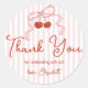 Retro Red Cherries with Pink Bow Script Thank You Classic Round Sticker