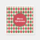 Festive and rustic looking vintage harlequin diamond pattern in holiday red and green on distressed / aged background. Customizable Merry Christmas text in center circle
