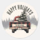 Retro Red Plaid Christmas Truck Custom Family Name Classic Round Sticker