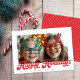 Retro Red Script Happy Holidays One Photo Holiday Card