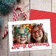 Retro Red Script Merry Christmas One Photo Holiday Card