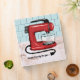 Retro red stand mixer recipe binder or personal cookbook on a faux tile and marble background, perfect for your keepsake cooking and baking family favorites recipe collection.
