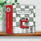 Retro or vintage vibe, watercolor style red stand mixer with checkerboard and diamond background on this recipe organizer or cookbook binder personalized with your text, title, and choice of fonts, perfect for your family cooking or baking collection, wedding gifting, or sharing recipes with friends and family.