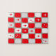 This Retro Red and White Starbursts Puzzle is so adorably space age you won’t be able to contain your enthusiasm. And, why would you want to? This 1960’s mid century modern inspired design features a dark heather grey background and rows of perfectly imperfect rectangles in cheery red, white, and dove grey. Kitschy white and red starbursts are placed in randomly selected rectangles. This mod pattern will make you feel like you jumped in a time machine and set the dial for irresistibly vintage!