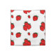 A set of cloth napkins with a retro pattern of red strawberries on white. Click Customize It to add your name or message, change background colors and more.