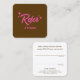 A super cute pink retro typogrpaghy and stars in brown background referral card great for anyone in the beauty or fashion industry. .For additional matching marketing materials, custom design or