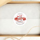 This design features a Christmas envelope seal, a vintage retro stamp, with red and white, with a simple minimalist typography, a cute whimsical, a Santa Claus, reindeer sleigh rides, and a classic traditional style party favor.