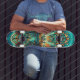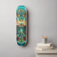 The "Retro Rhythms Festival Deck" is an Atompunk-themed skateboard deck graphic that captures the electrifying atmosphere of a futuristic concert. Set in a graphic novel style, this vibrant scene features a music festival with retro-futuristic musical instruments and performers dressed in atomic-era fashion. The stage is alive with energy, surrounded by an enthusiastic crowd, all under the glow of neon lights and metallic structures. The color palette is dynamic, dominated by teals, oranges, and metallics, reflecting the lively spirit of the event. This design is a celebration of music and technology in a future imagined by the Atomic Age, where rhythms resonate with the harmony of the past and future.