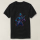 A bold and colorful cartoon illustration of a retro-inspired robot jamming on an electric guitar in a futuristic neon city. The robot has vintage gears, bolts, and LED lights with glowing neon lines across its body. The background features tall glowing skyscrapers, funky sound waves, and stars. Bright electric colors like neon blue, magenta, and orange dominate the design, creating an energetic 80s synthwave vibe. Perfect for music fans, retro futurism lovers, and robot art enthusiasts.