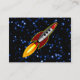 A retro 1940/50s style rocket blasts it's way into orbit, or maybe to the Moon or Mars. Perhaps in time to enjoy afternoon tea with the Martians, so don't forget to leave your calling card. :) Just edit the text. This card is ideal for further customization to since the rocket graphic is separate to the background so can resized and even rotated to create your own unique style.
