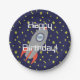 Retro Rocket Ship Happy Birthday Paper Plates