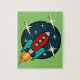 Retro Rocket ship graphic illustration jigsaw puzzle. Background color can be customized.