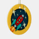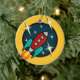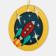 Funny retro rocket ship illustration circle ceramic ornament. Back date and text are doubled for shadow effect and can be customized.