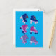 Retro Rollerskates Purple Pink Blue Pattern Postcard