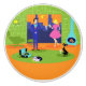 This Retro Romantic Evening Couple Ceramic Pull looks like a scene out of a 1960's romantic comedy. The minimalist design features an attractive cartoon couple in the living room of a mid century modern, urban apartment. The room prominently features a green, stone wall with a floor to ceiling window with a view. Through the window, we can see the blue silhouette of a big city skyline. A crescent moon is just visible in the orange sky of sunset. The furnishings in the room include a green, lounge chair with matching footstool, a yellow, sputnik light fixture, and a turquoise, cone shaped fireplace, complete with roaring fire. In the center of the orange flooring, there is a round, green shag rug. A portable, turquoise and black record player is placed on the rug. Next to the record player, a vinyl record can be seen poking out of a kitschy album cover. Also on the rug, there is a sleek, black cat wearing a teal collar. This fancy feline is sitting in front of a martini glass. Enjoying this scene, we have a very sophisticated couple. There is a suave man wearing a blue suit, light blue shirt and red tie. The tall, dark and handsome man is enjoying the company of an elegant blonde woman. The lovely lady is wearing a hot pink dress with a form fitting bodice and flared skirt. They are each holding a crystal martini glass with a floating olive. Cheers! Here's to the perfect evening at home!