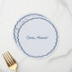 The round shape, paired with the delicate green handwritten lettering, creates a feeling of vintage charm and warmth. The retro-inspired design evokes nostalgia, bringing a sense of tradition to your celebration. Perfect for setting the tone of a refined and intimate wedding, this menu isn't just a functional detail—it's a heartfelt gesture that adds personality to your special day. Explore the full collection to find more pieces in this timeless and elegant style. This mockup was created using AI technology.