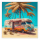 Retro RV under Palm Trees vintage art.