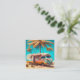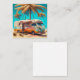 Retro RV under Palm Trees vintage art blank card.