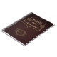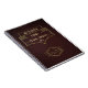 The design simulates gold raised details on a dark red leather background. The text is all customizable.