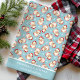 Retro Santa Blue Personalized Name Christmas Kitchen Towel