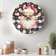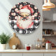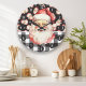 Retro Santa Claus Black And White Plaid Christmas Large Clock