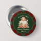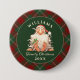 Celebrate the Christmas holiday season with custom pin back buttons that include a text template for personalizing with your family name and the year. This festive and fun holiday themed design has a whimsical vintage santa in long fluffy beard with a sprig of holly held between his toes. Whether you are hosting or attending family gatherings during the Christmas holidays, these custom buttons add a personal touch to your celebration.
