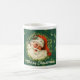 The Retro Santa Mug is a fun way to share your holiday cheer! It also makes a great gift! The design features Santa's face surrounded by a wreath, on a field of dark green. The text reads, "Merry Christmas." Customize the text as desired.