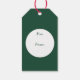 Here's a classy retro portrait of Santa on a colorful gift tag! He wears his traditional hat, and, of course, his famous beard. His cap is decorated with a sprig of holly. Pine needles circle the portrait. Bright gold text says Merry Christmas and Happy New Year. The back of the tag has a white circle banner with your custom text on the same green background. *Please note - the image is printed and does not contain actual glitter.*