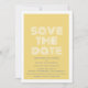 Plain white envelopes are included with paper invitations and will come to fit the invitation size you select. If you don’t need the envelopes, you may choose to not receive them by selecting the dropdown below "Envelopes" and choosing "None." If you’d like to have a design on your envelopes, you can browse all of these available envelopes to find the design that complements your Retro Save The Date Invite Yellow Invitation.