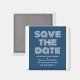 Retro Save the Date Magnet in blue and white with a funky modern typography design. This trendy and stylish save the date magnet is easy to customize with your wedding details. For more customization options, click on the Customize It button.