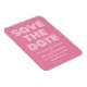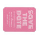 Retro Save the Date Magnet in pink and white with a funky modern typography design. This trendy and stylish save the date magnet is easy to customize with your wedding details. For more customization options, click on the Customize It button.