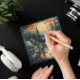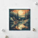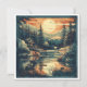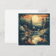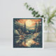 Transport your recipients to a peaceful Nordic retreat with this mid-century modern inspired holiday card. The artwork features a clean, graphic style with textured screen-print effects, showcasing a cozy illuminated cabin beside a mirrored lake. With its warm sunset palette and minimalist pine silhouettes, this card is a sophisticated choice for outdoor enthusiasts or fans of vintage travel posters.