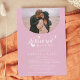 Plain white envelopes are included with paper invitations and will come to fit the invitation size you select. If you don’t need the envelopes, you may choose to not receive them by selecting the dropdown below "Envelopes" and choosing "None." If you’d like to have a design on your envelopes, you can browse all of these available envelopes to find the design that complements your Retro Script Photo Lilac Pink Rehearsal Dinner Invitation.