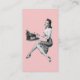 Business cards featuring a 1950s vintage illustration of a pinup girl typing. Customize them with your own information. Retro cool!