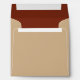 These square envelopes are perfect for your wedding invitations. They feature a 1970s inspired geometric graphic in brown, orange and burgundy red against a tan background. The interior is a burgundy red color. The back flap is ready to be customized with your own name and address.