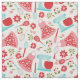 Vintage themed pattern featuring aprons, mixers, kitchen utensils and flowers in shades of pink, red and blue. Perfect for shabby chic kitchen projects.