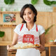 Crisp red and white make this diner apron stand out. Personalize the sign with your family name to show just whose kitchen this is! You'll look like a real short-order cook now. Red and white checkerboard border at the bottom adds to the very 50s diner feel. Straps are a matching red to the design.