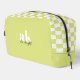 Make a statement wherever you go with our custom travel toiletry bag, featuring a bright retro checkerboard print personalized with monogrammed initials and a signature script name. Crafted from durable, high-quality materials, this versatile bag keeps your toiletries or accessories organized in style. Customize the colors to match your personality or gifting occasion for a truly unique design. Perfect for travel, gym trips, or everyday use, this eye-catching toiletry bag combines practicality with bold, retro-inspired flair.
